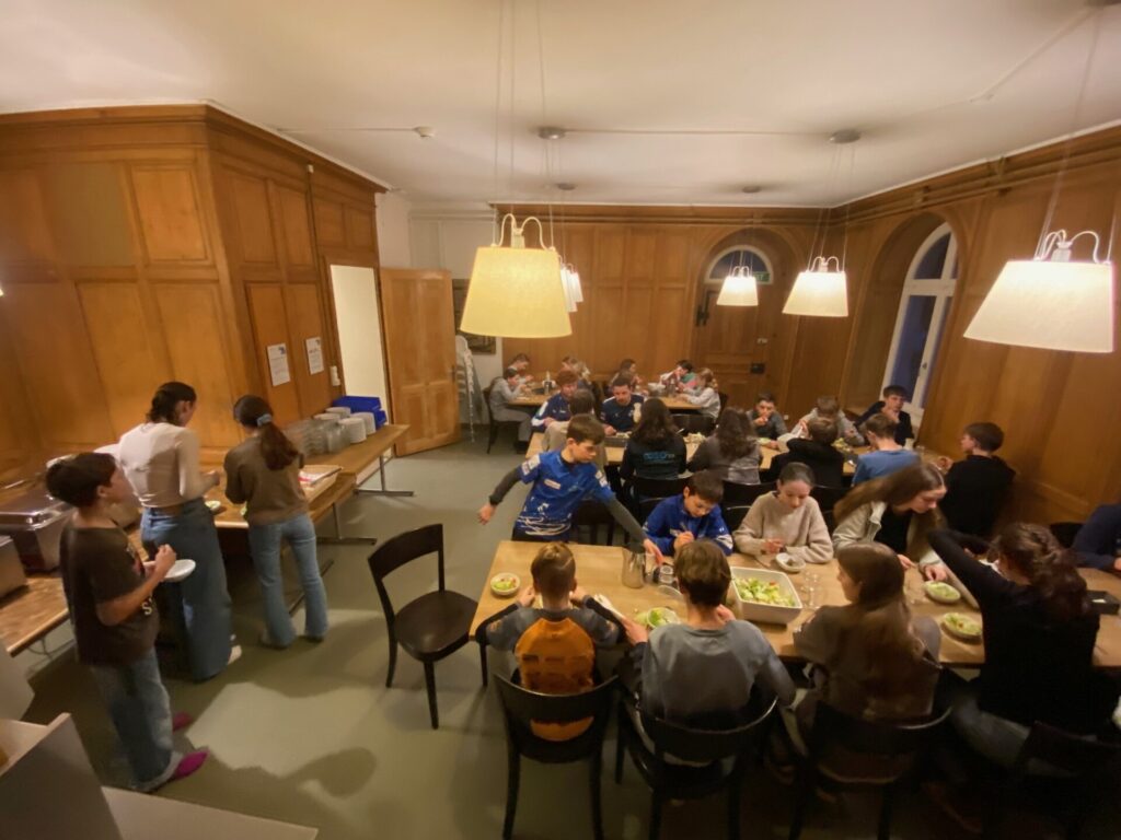 Danach fuhr das NWF weiter nach Schaffhausen in die Jugendherberge. Dort gab es Ghackets mit Hörnli, Salat und sogar ein Dessert 😉. Anschliessend verbrachten wir den Abend mit Spiel und Spass.